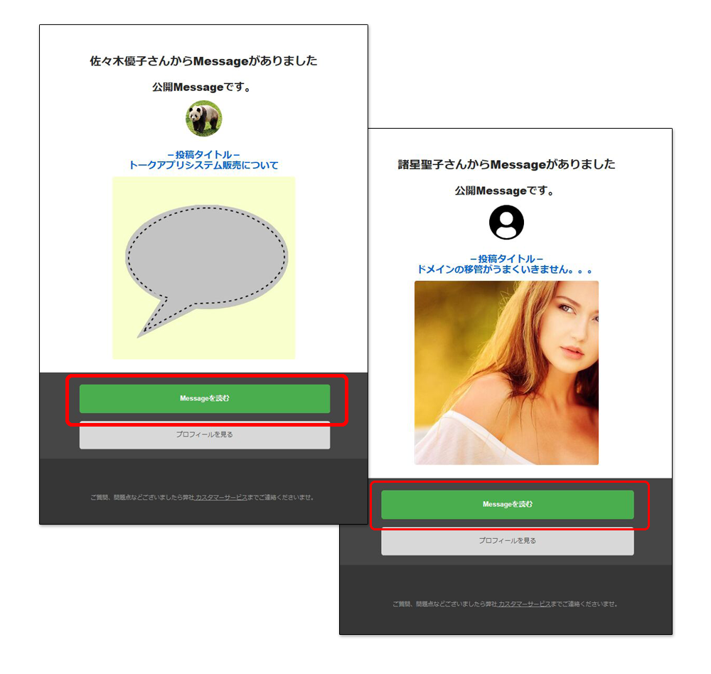 ※アドレス帳に投稿者(ニックネーム)と詳細に記入した自己紹介が表示します